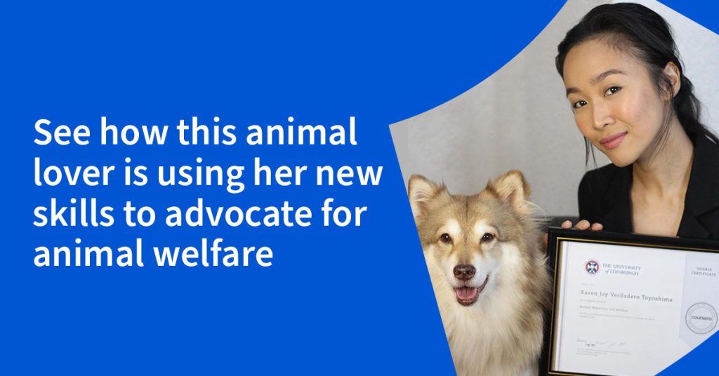 Since enrolling on Coursera, Karen has started to spread awareness of animal neglect, abuse, and abandonment. She’s also proposing different projects for different communities to help animal welfare in her country. Karen has become more confident in speaking publicly and sharing her knowledge online and offline. She’s now actively participating in different forums and telling others about her personal experiences.