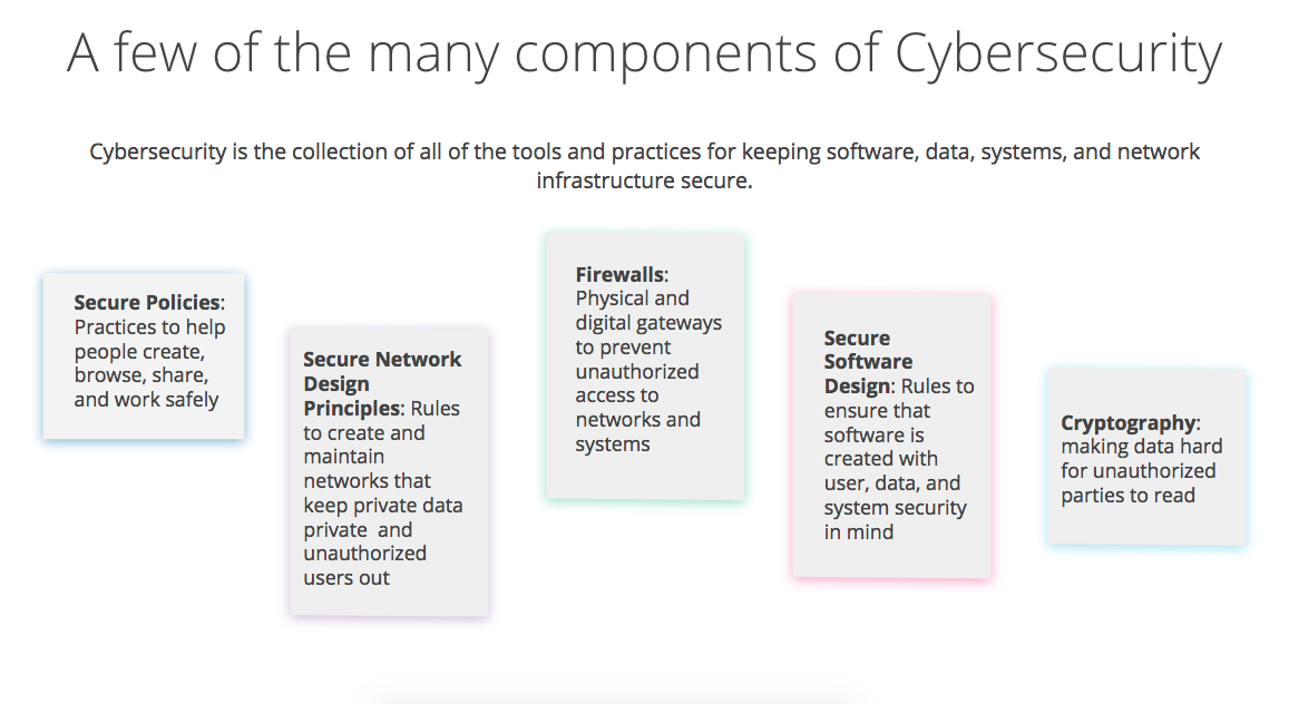 Cybersecurity is a huge field with topics ranging from the highly technical to basic concepts that everyone who uses a computer should know. We all want to do whatever we can to protect our personal data from credit card or identity thieves. Businesses and governments want to avoid being hacked, and perhaps even worse are reports of 1.1 billion records of sensitive data being accidentally published or poor security allowing easy access to credit card information, not to mention DDOS attacks being used to manipulate elections. These days, cybersecurity knowledge is becoming more important for everyone.